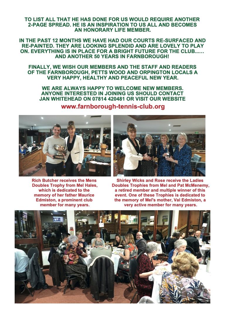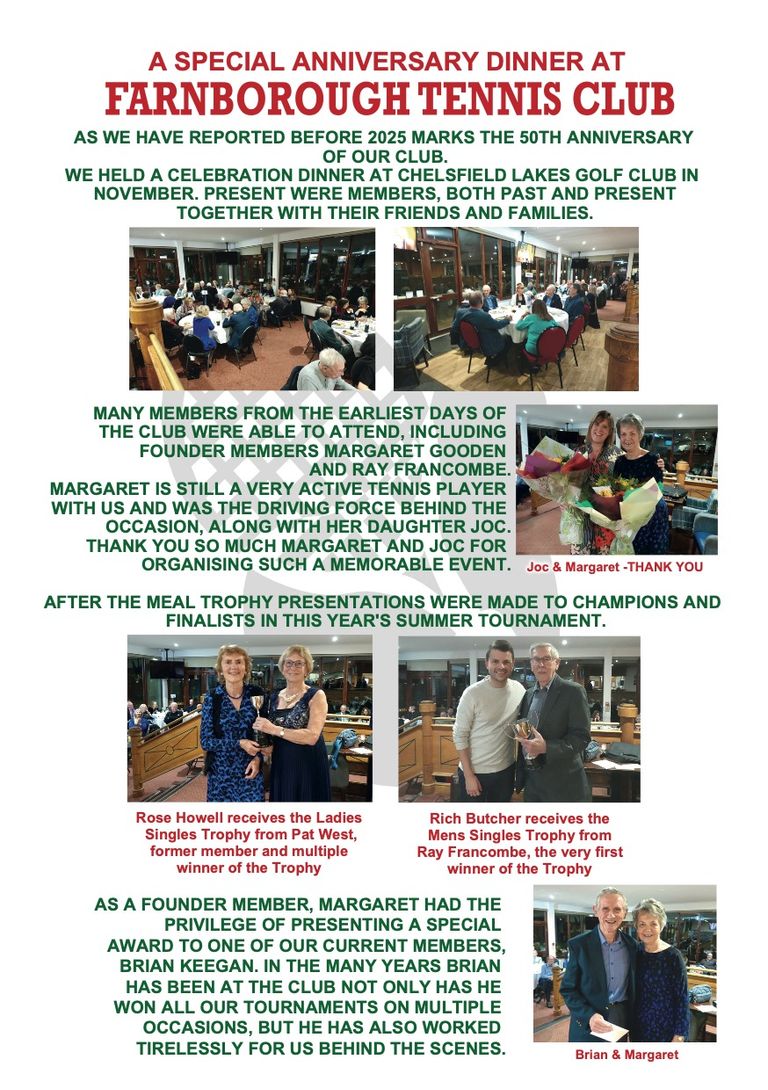 The FTC 50th Anniversary dinner took place on 15th November at Chelsfield Lakes and was attended by 65 members, former members and partners. It was a splendid evening with some entertaining speeches from Peter Sargent, on behalf of the Club, and Margaret Gooden, who presented Brian Keegan’s Honorary Membership.