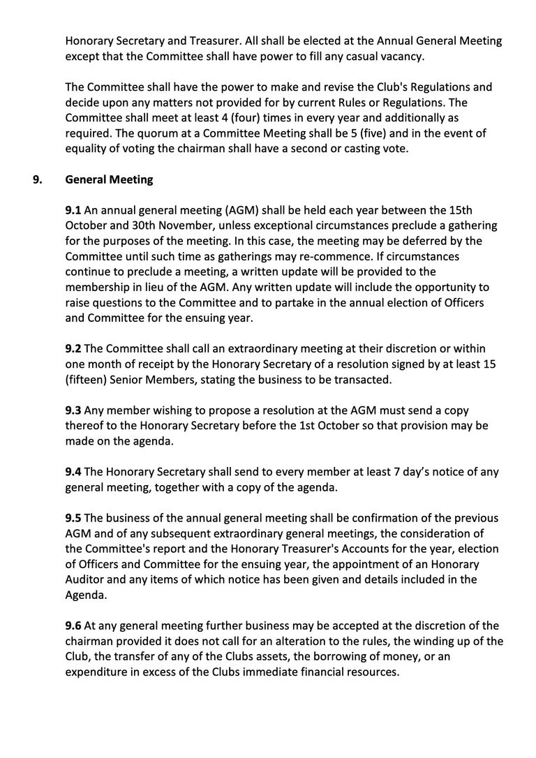The management of the Club is within the control of a Committee of at least four members, in addition to the Officers, who are ex-officio Chairman, Honorary Secretary and Treasurer.